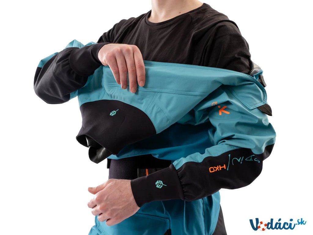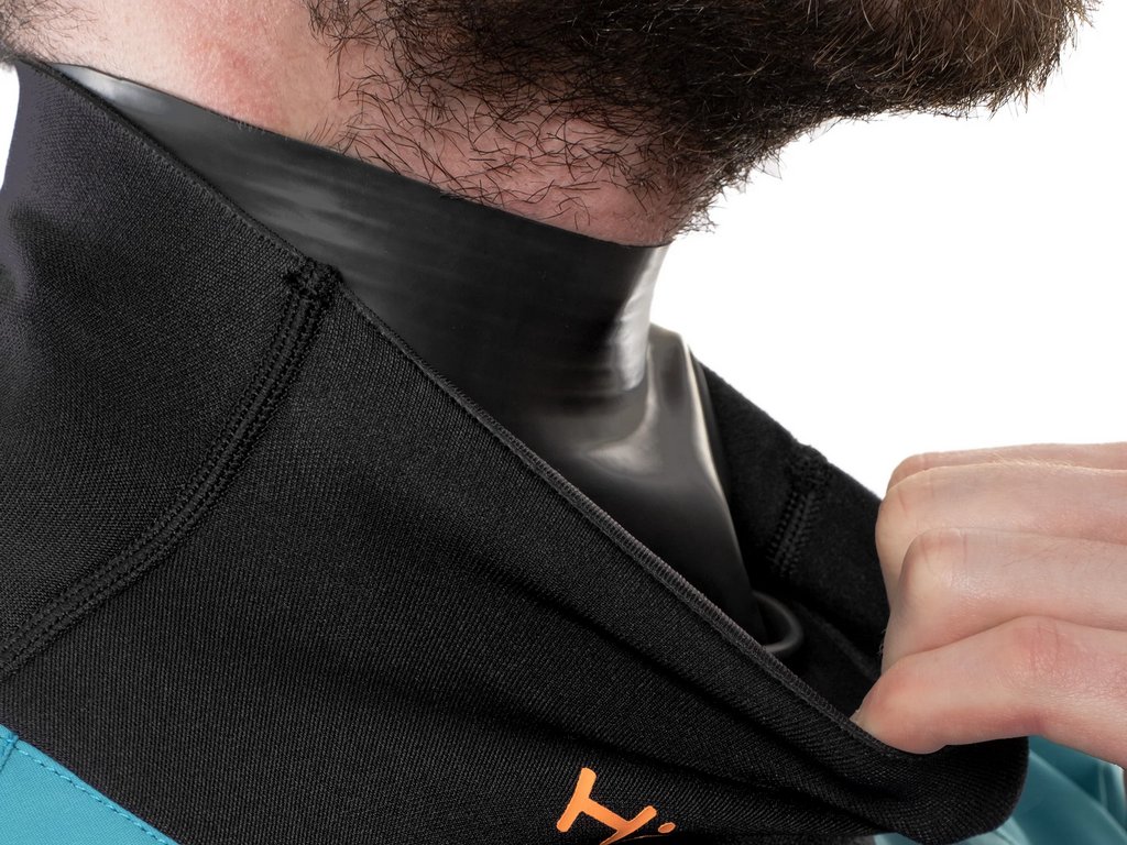 Okolo krku a zápästí je použitá latexová manžeta prekrytá dlhou neoprénovou manžetou ktorá chráni latex a zvyšuje tepelný komfort a vodeodolnosť.